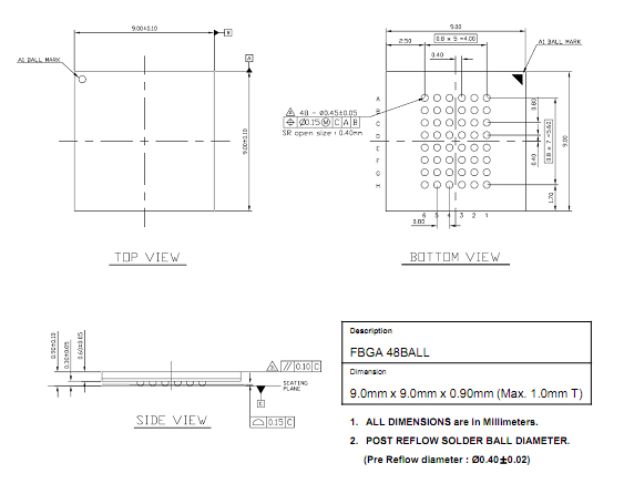 48Ball FBGA:9.0 x 9.0 x 1.0mm