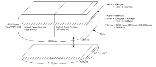 AFND1216U1为256Mbit,备用容量为8Mbit。该器件采用3.3V电源供电。